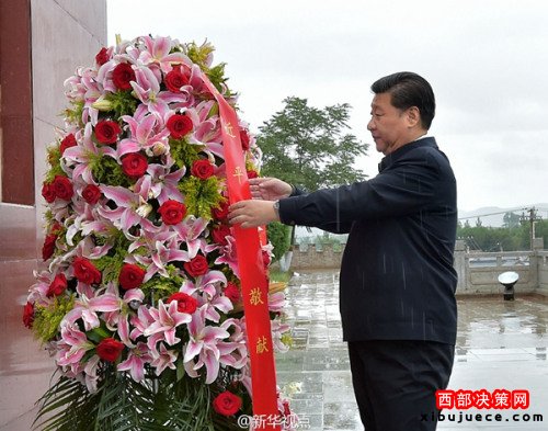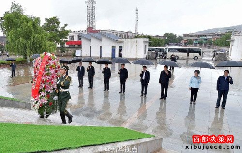 習近平考察寧夏首站到固原,冒雨向紅軍長征會師紀念碑敬獻花籃