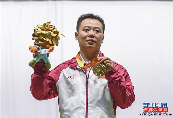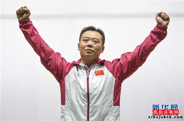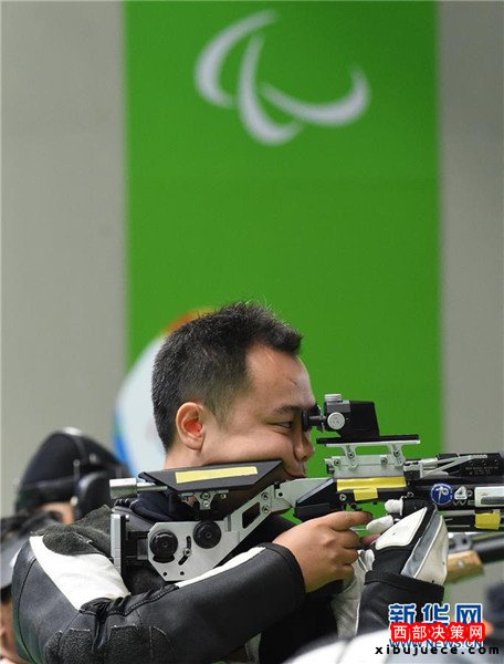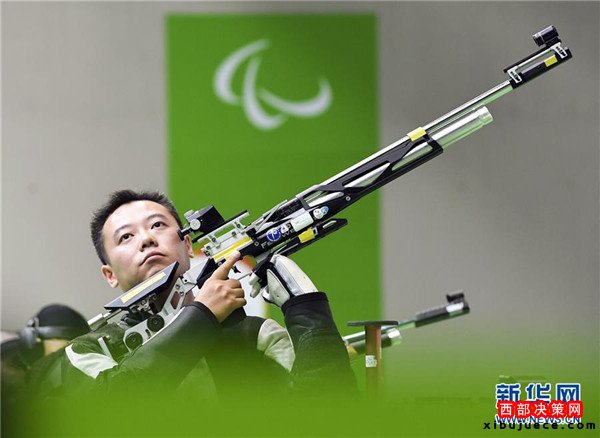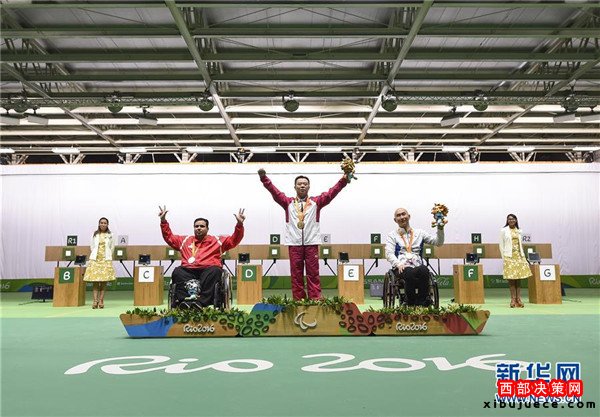 9月8日,董超在比賽后慶祝。當(dāng)日,在2016年里約殘奧會射擊R1-SH1級別男子10米氣步槍站姿決賽中,中國選手董超以205.8環(huán)的成績奪得冠軍。