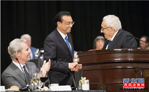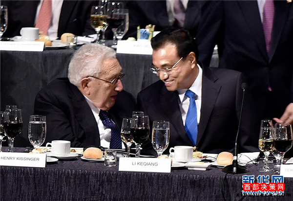 李克強表示,基辛格博士45年前訪華時,中美貿(mào)易幾乎為零。45年后的今天,中美貿(mào)易額占全世界貿(mào)易總量的五分之一,中美經(jīng)濟總量之和占世界經(jīng)濟總量的三分之一。我們的貿(mào)易和投資量如此之大,自然難免有分歧摩擦,但我們之間的共同利益遠大于誤解和分歧。我們正在進行的雙邊投資協(xié)定談判就是向兩國工商界發(fā)出中美進一步擴大相互開放和投資的積極信號。希望美方采取務(wù)實靈活態(tài)度,與中方共同努力達成高水平、互利共贏的雙邊投資協(xié)定。兩國可以通過更多貿(mào)易與人員往來,坦誠溝通,增進理解與互信,推動中美關(guān)系朝著穩(wěn)定向好的方向繼續(xù)前行。