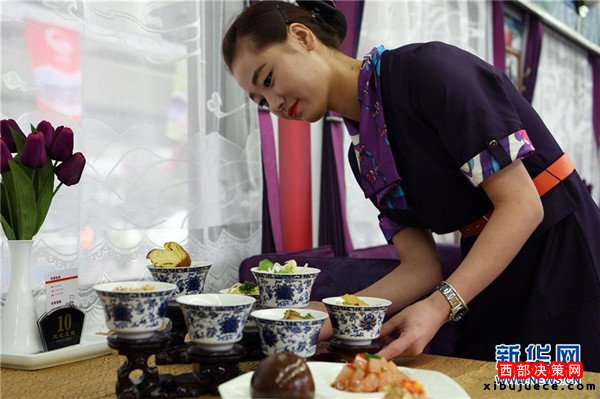 9月27日,“蘭州新區(qū)號(hào)”列車工作人員為旅客準(zhǔn)備蘭州風(fēng)味特色餐食。當(dāng)日,首趟以“蘭州新區(qū)號(hào)”冠名的K861/2次和以“蘭州國(guó)際港務(wù)區(qū)號(hào)”冠名的K1042/41次“絲路快車”相繼從蘭州火車站發(fā)車,蘭州鐵路局以“絲路快車”為主題的列車至此已達(dá)23對(duì)。據(jù)了解,“絲路快車”創(chuàng)新鐵路客運(yùn)供給與服務(wù),在普通旅客列車的基礎(chǔ)上,提升改造列車硬件設(shè)施,營(yíng)造列車絲路文化氛圍,提高列車員服務(wù)水平,帶給旅客全新出行體驗(yàn)和服務(wù)。