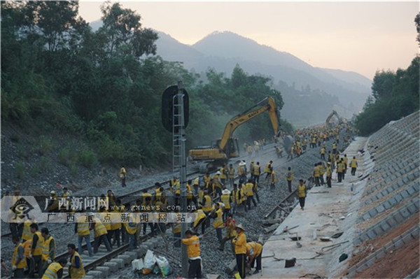 玉林市高鐵開通問題一直以來備受關注。12日,記者從南寧鐵路局了解到:10月11日凌晨,經過2300多名鐵路施工人員5個多小時的連續(xù)作業(yè),黎湛鐵路電氣化改造工程貴港(根竹)至玉林段最后一處線路撥接施工順利完成。至此,該線路涉及的52處線路撥接改造全部完成,為今年底線路開通奠定了重要基礎。