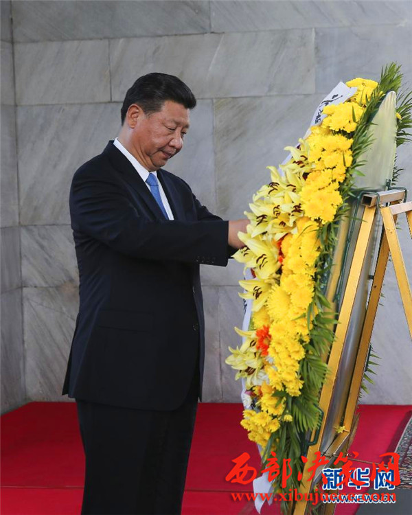會(huì)談前,習(xí)近平向柬埔寨獨(dú)立紀(jì)念碑獻(xiàn)花圈。