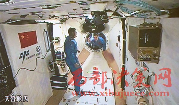 10月19日,神舟十一號(hào)航天員景海鵬和陳冬順利進(jìn)入天宮二號(hào)實(shí)驗(yàn)艙。景海鵬(左)和陳冬在天宮二號(hào)實(shí)驗(yàn)艙向全國(guó)人民問好并敬禮(攝于北京航天飛行控制中心大屏幕)。