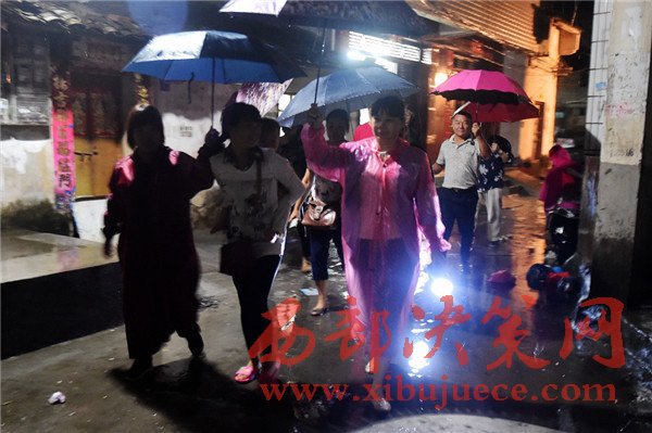 10月18日,欽州市東風(fēng)社區(qū)的工作人員在轉(zhuǎn)移危房群眾。