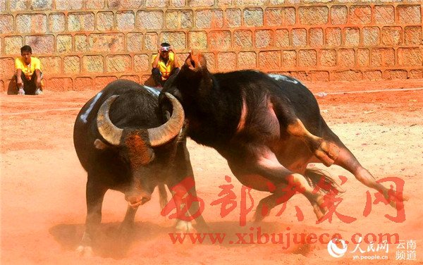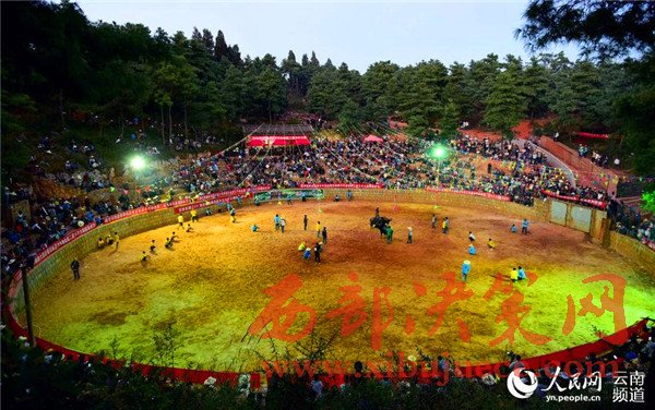 斗牛是石林縣最具民族特色的項目之一,已和當?shù)匾妥迦嗣裣喟榱藬?shù)千年,石林很多村莊都會舉辦斗牛比賽。對彝族人民來說,斗??梢詭砑t火、吉祥,具有有很深的價值寓意。