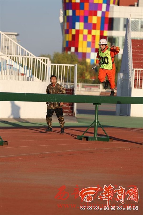 負(fù)重攀登10樓 榆林市消防大比武130余名鐵漢炫技