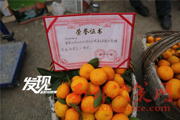 張小平家的橘子在鎮(zhèn)上舉行的褒河蜜橘金秋品嘗會(huì)獲得二等獎(jiǎng),張小平把獎(jiǎng)狀擺在了他的橘子攤上。張小平說,他家有6畝橘園,收入6萬元不成問題。