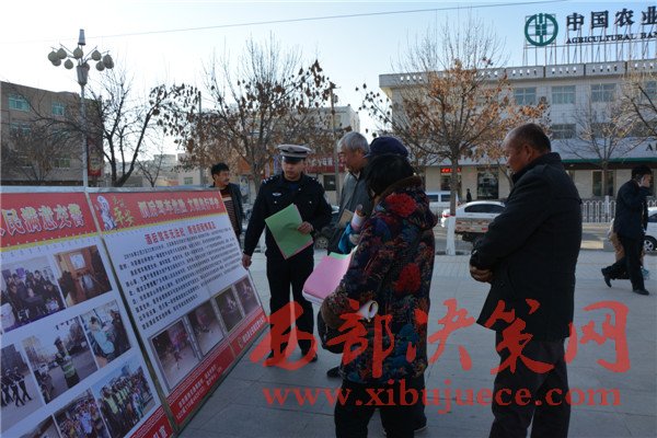 西部決策網(wǎng)訊 (通訊員 白曉茸)為建設(shè)更加美好靖邊,營(yíng)造安全和諧的道路交通環(huán)境,進(jìn)一步提升公眾安全感和群眾滿意度,2016年11月15日上午,靖邊縣公安局交警大隊(duì)積極參加了縣局在縣民樂園廣場(chǎng)舉行的“社會(huì)治安我滿意、平安建設(shè)我知道、公安工作我支持”為主題的集中宣傳活動(dòng)。