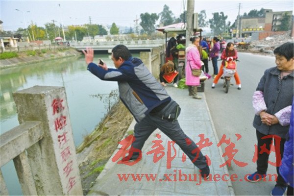 曾勇跑到離家最近的一個階梯處,走下階梯,發(fā)現(xiàn)甘先生根本夠不著竹竿。他繼續(xù)往前跑,第二個階梯處,他目測發(fā)現(xiàn),雖然甘先生離河岸近一些了,但依然夠不著,只好加速往下游跑。