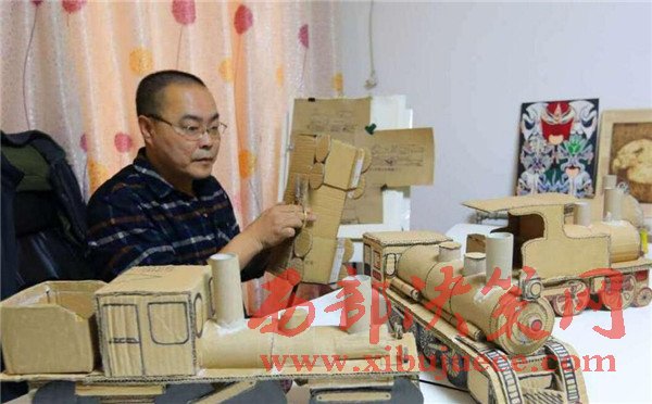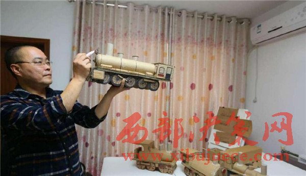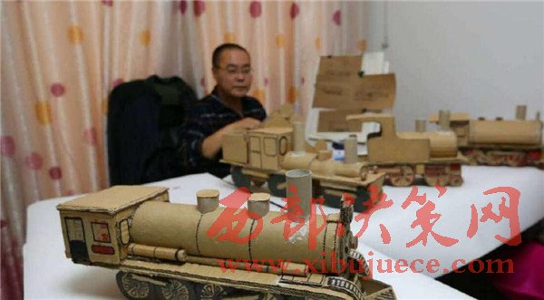【廢舊紙箱變成精美的老式“蒸汽火車”】廢舊紙箱、紙盒能做什么呢?大多數(shù)人都會把它當(dāng)成廢品賣掉了,而市民王小龍卻變廢為寶地將其制作成了4個精美的老式“蒸汽火車”。11月20日,記者來到丈八北路附近的王小龍家中,剛下班的他顧不上休息,已經(jīng)在工作臺前做起微型“蒸汽火車”的車廂,已經(jīng)做好的4個微縮版的老式“蒸汽火車”醒目地擺在桌子上,讓人眼前一亮。這些“蒸汽火車”全是用廢舊的紙箱、紙盒手工制作,司機室、鍋爐、煙囪、大燈、車輪等,樣樣都有。