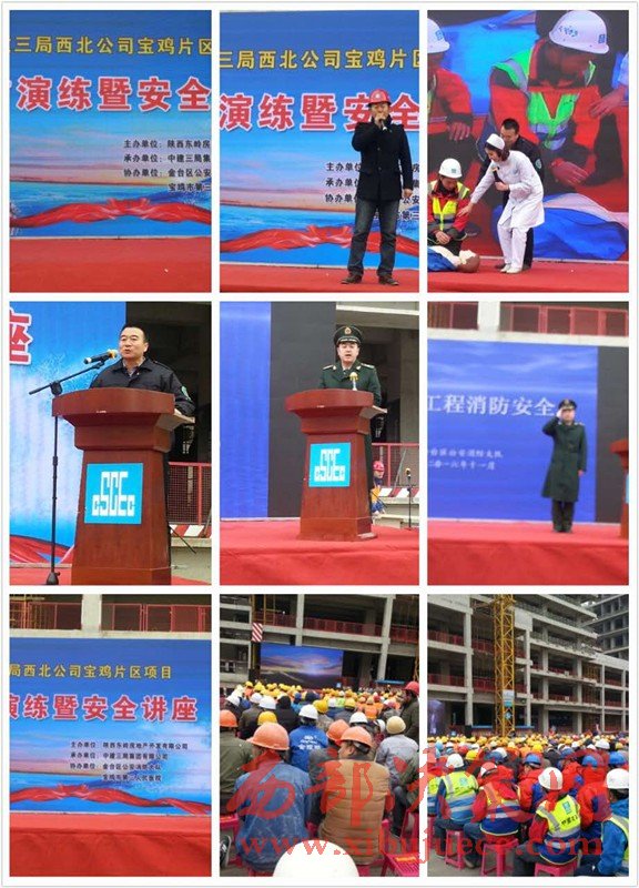 西部決策網(wǎng)訊(帥華鋒 李亮亮)11月24日下午,為促進(jìn)施工現(xiàn)場(chǎng)消防安全管理,營造人人重視消防的良好氛圍,保障冬季施工安全,中建三局在寶雞中央金融文化商務(wù)區(qū)聯(lián)合舉行“冬季施工消防安全警鐘長鳴”為主題的消防安全知識(shí)講座、模擬消防急救演練,使在場(chǎng)的建設(shè)者們真正體會(huì)到了做好冬季施工消防安全的重要性和必要性。東嶺地產(chǎn)總公司各項(xiàng)目部、金臺(tái)消防大隊(duì)、金臺(tái)區(qū)質(zhì)檢站、寶雞市第三人民醫(yī)院、全體參建單位施工人員等500余人參加了此次活動(dòng)。