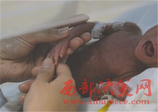 11月30日,在成都市第三人民醫(yī)院的新生兒重癥監(jiān)護(hù)室里,剛剛滿月的“007”正陷入睡夢(mèng)中。“007”這個(gè)名字,是三醫(yī)院新生兒監(jiān)護(hù)室的護(hù)士們給她取的。她是一名特殊的女嬰,這個(gè)在媽媽肚子里呆了僅31周,就迫不及待來到世界上的早產(chǎn)兒,出生時(shí),體重僅僅700克,幾乎與一瓶礦泉水的重量差不多,整個(gè)身軀只有女生的巴掌大小。