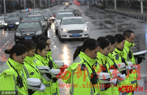 在南京市中心新街口,十點整,隨著凌厲尖銳的防空警報在南京上空拉響,往日熙攘熱鬧的新街口變得靜止。車輛緩緩?fù)W。鲃峪Q笛致哀1分鐘。行色匆匆的路人也停下腳步在寒風(fēng)中低頭默哀。此刻,所有人共同緬懷在南京大屠殺中死難的同胞。