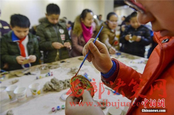 原標(biāo)題:半坡遺址文物新疆展出 小學(xué)生繪制陶器體驗(yàn)歷史