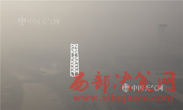 霧霾中的北京地標(biāo)建筑之一玲瓏塔。