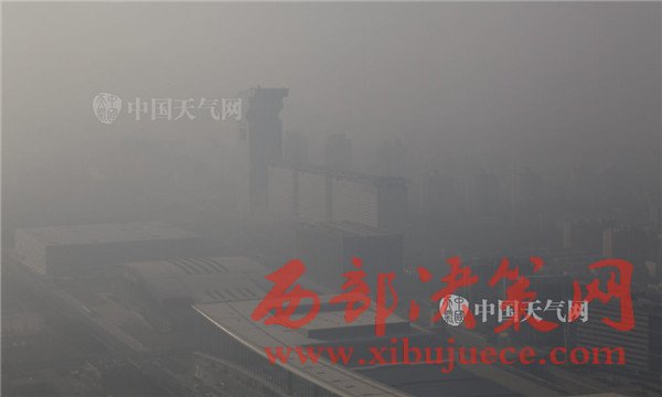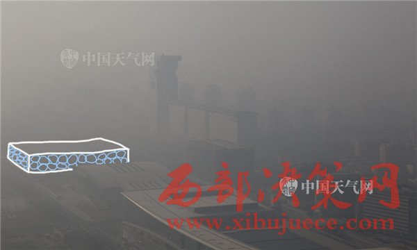 2016年12月19日早晨,北京持續(xù)空氣重污染。記者登上246.8米高的北京奧林匹克塔,鳥(niǎo)瞰北京城,發(fā)現(xiàn)咫尺之遙的鳥(niǎo)巢、水立方等奧運(yùn)場(chǎng)館和城市地標(biāo)建筑被霾“吞沒(méi)”,消失不見(jiàn)。圖為鳥(niǎo)巢。