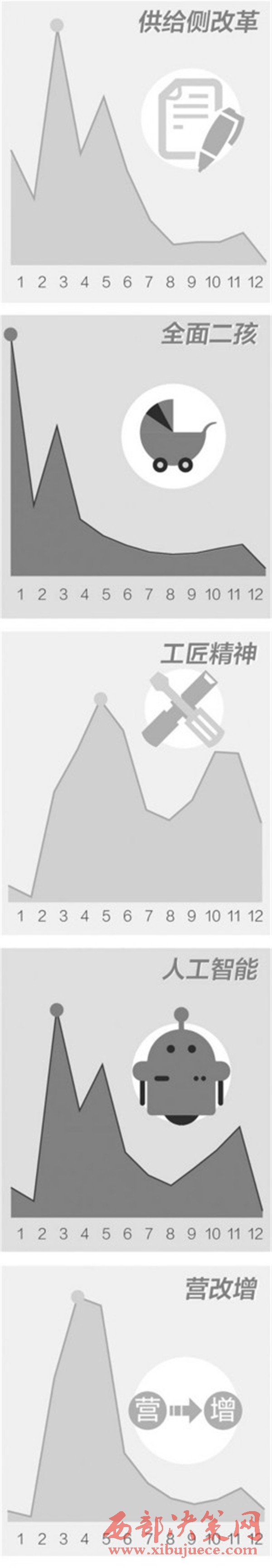 2015年12月召開(kāi)的中央經(jīng)濟(jì)工作會(huì)議提出2016年是推進(jìn)結(jié)構(gòu)性改革的攻堅(jiān)之年,并明確要抓好去產(chǎn)能、去庫(kù)存、去杠桿、降成本、補(bǔ)短板五大任務(wù)。大數(shù)據(jù)顯示,在此后的幾個(gè)月內(nèi),有關(guān)供給側(cè)結(jié)構(gòu)性改革的信息頻頻“刷屏”。今年以來(lái),推動(dòng)供給側(cè)結(jié)構(gòu)性改革取得初步成效。2017年是推進(jìn)供給側(cè)結(jié)構(gòu)性改革的深化之年,搜索指數(shù)反映出的民眾關(guān)切也將成為深化改革的動(dòng)力源泉。