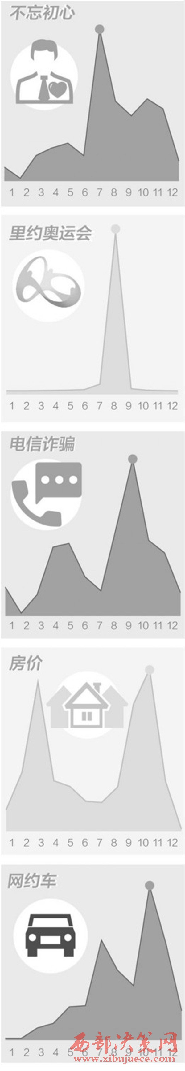 圖表說(shuō)明:根據(jù)2016年網(wǎng)民在百度上對(duì)以上關(guān)鍵詞的逐月搜索數(shù)據(jù)繪制,搜索指數(shù)的上升和下降反映各關(guān)鍵詞搜索頻次的變化。