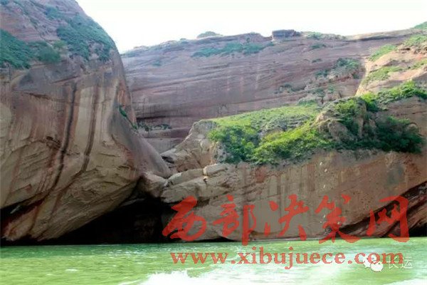 靖邊八景之一的“紅崖曉鏡”就在現(xiàn)在的水上丹霞的位置。靖邊縣志記載,“在杜家大臺(tái)兩岸,紅峽對(duì)峙,中留一線,曉日初升,恍是高樓仙境”。這里過(guò)去叫草溝灣,曾是水草豐美,水鳥(niǎo)棲息,水清如鏡,兩岸赤壁對(duì)峙,為靖邊的一大景觀。
