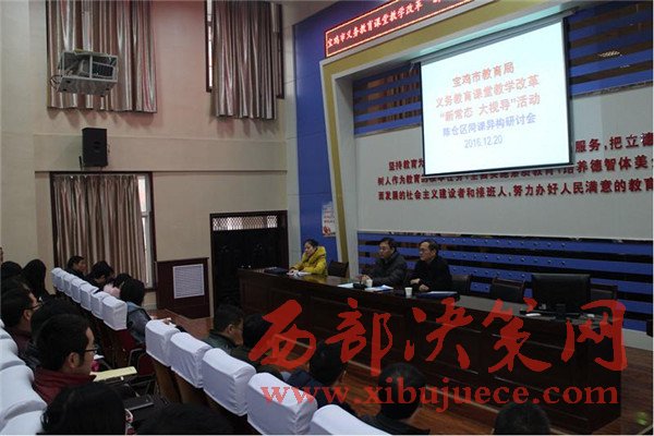 西部決策網(wǎng)訊(任書彥 郭宏娟)  12月19日至20日,寶雞市教育局在陳倉區(qū)開展了義務(wù)教育課堂教學(xué)改革“新常態(tài)·大視導(dǎo)”活動(dòng)。本次視導(dǎo)由寶雞市教育局副局長(zhǎng)吳燕玲任組長(zhǎng),從行政和專業(yè)兩個(gè)層面,深入寶雞市陳倉區(qū)教體局及千渭初中、慕儀初中、實(shí)驗(yàn)小學(xué)、西堡小學(xué)、渭陽小學(xué)等5所課改學(xué)校,通過聽取匯報(bào)、實(shí)地走訪、查閱資料、問卷調(diào)查、召開師生及家長(zhǎng)座談會(huì)、課堂觀摩、示范教學(xué)、講座論壇、現(xiàn)場(chǎng)反饋等多種形式,對(duì)寶雞市陳倉區(qū)義務(wù)教育課堂教學(xué)改革情況進(jìn)行了全方位、深層次的調(diào)研指導(dǎo)。