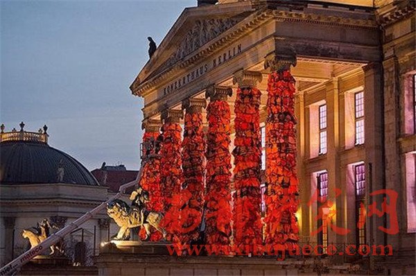 因其激進(jìn)的藝術(shù)而聞名,Ai Wei Wei對(duì)社會(huì)事件表態(tài)并不陌生。這個(gè)#救救航海者系列用1400個(gè)明亮的橙色救生衣大膽地覆蓋了德國(guó)柏林音樂(lè)廳的支柱。此外還有一個(gè)掛著標(biāo)簽的救生艇。這個(gè)系列呼吁大家重視尋求庇護(hù)的難民。