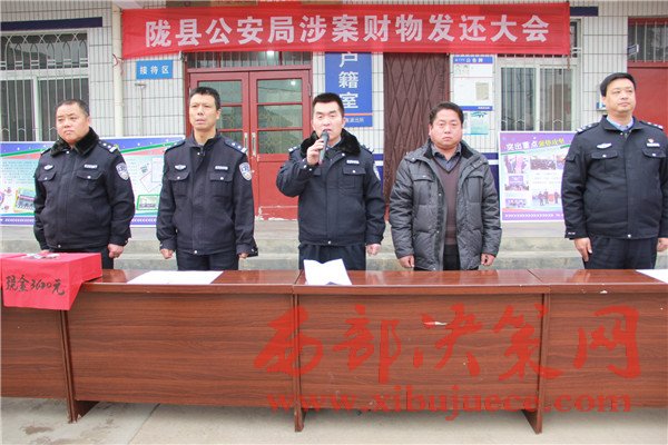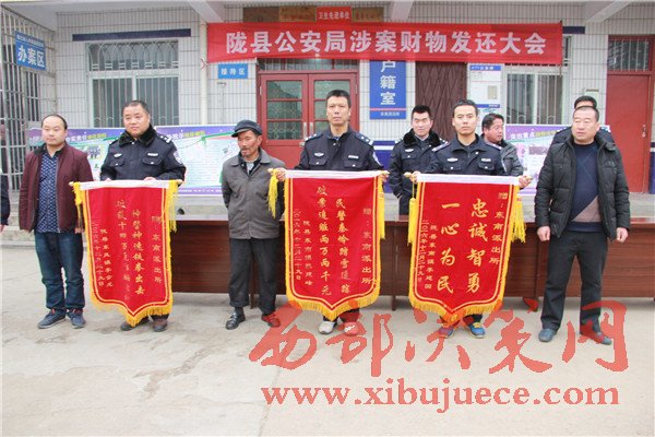 西部決策網(wǎng)訊(帥華鋒 杜杰 通訊員 邢亞洲)12月29日中午,隴縣公安局東南派出所召開贓物發(fā)還大會(huì),為群眾發(fā)還現(xiàn)金44620元,群眾放起了鞭炮送來(lái)感謝信和錦旗表示感謝。。