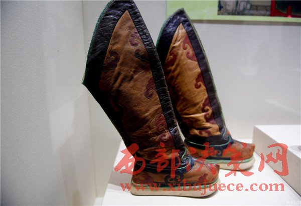 首次展出的“清明黃江綢繡金龍出鋒夾朝袍”為清帝冬季朝袍,袍身繡刺云龍、十二章紋,袍襟綴鎏金圓銅扣五枚、披肩綴鎏金圓銅扣一枚。由于朝袍沒有口袋,因此清帝腰帶常掛荷包、香囊、扇袋等實(shí)用裝飾物件。清黃皮釘云頭尖底靴。