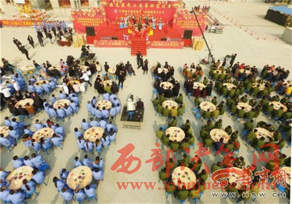 “大家雖在一個(gè)工地干活,但聚在一起吃飯還是第一次!”昨日上午10時(shí)30分,在該項(xiàng)目工地的一塊廣場上,120張桌子擺在中間場面相當(dāng)震撼,廣場西側(cè),20多位廚師正在為這頓團(tuán)圓飯而忙碌著。