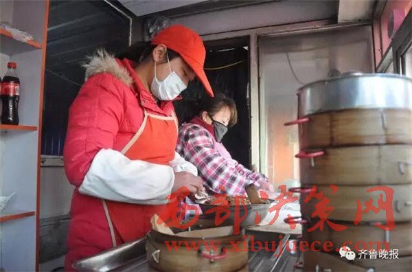 14日一大早,記者在無棣縣城找到了正忙著包小籠包的“用盡一生”。她本名趙平,無棣縣信陽鎮(zhèn)人,30歲,慈眉善目,笑起來有一種特別的吸引力。趙平的包子鋪其實就是一座簡易板房,而負責打掃這條街的70歲環(huán)衛(wèi)工程延新,休息之余喜歡來這里坐坐,喝點熱水,洗洗手,聊聊天。“主要感覺他掙這些錢實在不容易”,趙平說。