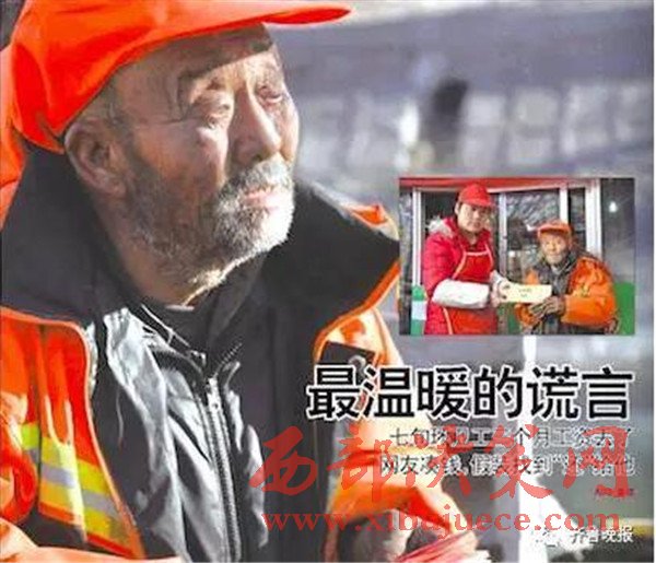 有人丟了辛苦錢,好心人湊錢假裝撿到送還,這種影視劇中才會出現的場景,在山東濱州無棣真實上演了,給這個寒冷的冬天帶來了濃濃暖意。近日,70歲的環(huán)衛(wèi)工人程延新在回家路上丟失了自己辛苦工作三個月掙來的工資。在好心市民把這件事轉發(fā)到朋友圈后,迅速引發(fā)了網友關注,有網友甚至自己湊好錢后,假裝撿到了老人的工資,“送還”老人。