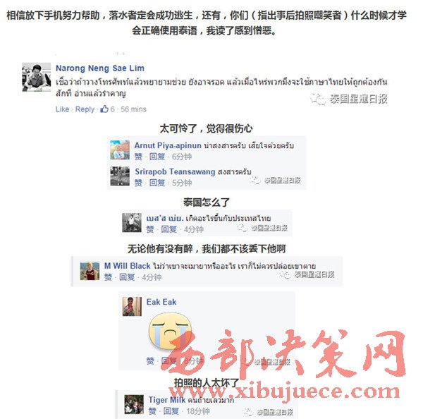 近日,據(jù)泰國網(wǎng)友稱,他的一位朋友因喝酒后頭暈,不慎跌入河道,由于不會水性,因此只能掙扎,并舉手向路人求救,而路人看見后立即沖上前,緩緩掏出手機,開始各角度拍照,生怕自己錯過了什么趣聞,并發(fā)送至臉書平臺,同時貼文表示,一弱智掉水里了,多名網(wǎng)友還回應道:“他怎么掉下去的?哈哈哈。”