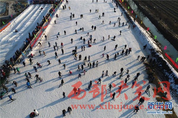 2月2日,游人在江蘇省淮安市碼頭鎮(zhèn)人工雪場(chǎng)感受冰雪的樂趣。
