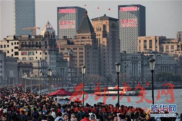1月28日,大批游客在上海外灘觀光游覽。