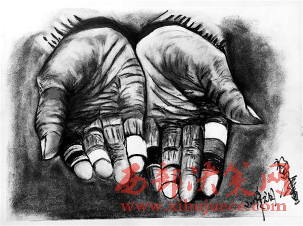 在李福昌家中,記者看到了他給保潔員畫的60張生活速寫。一眼望去,保潔員們神態(tài)、姿勢、動作各不相同,相同的是他們都正在辛勤地勞作。“畫得越多,對內(nèi)心的沖擊越大。”李福昌還特別細心地為每幅畫作都配上合適的詞。一幅手部特寫寫著“看到這雙手,請您不要再亂扔東西了”。