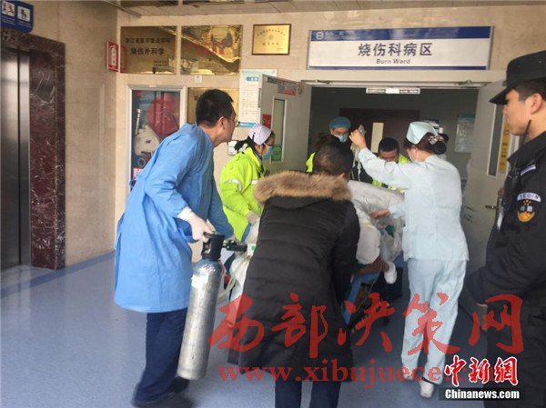 浙江大學(xué)醫(yī)學(xué)院附屬第二醫(yī)院醫(yī)護人員正將浙江天臺縣“2·5”火災(zāi)事故受傷人員送至燒傷科病區(qū)。