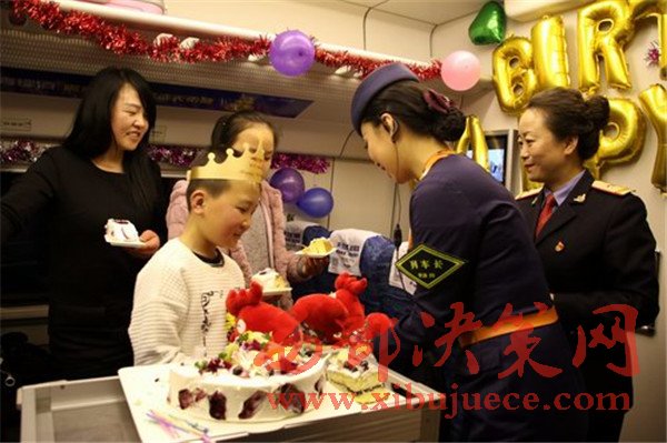 “祝你生日快樂(lè)”,2月5日,在蘭州西開(kāi)往西寧的D2723次列車上,為一對(duì)“天路母子”舉行的別樣生日聚會(huì)引得網(wǎng)名點(diǎn)贊無(wú)數(shù)。