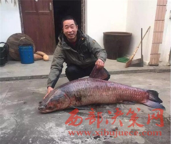 2017年2月13日報道,江蘇鹿苑的邱大哥平時喜歡釣魚,春節(jié)期間,他閑來無事,便約上幾個親朋好友到雙山島垂釣,結果釣到了一條凈重52.2公斤(約104斤),長1.27米的烏青魚。