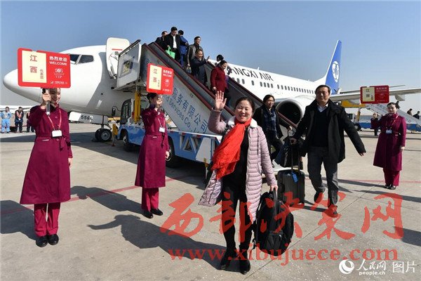 3月2日上午,出席十二屆全國人大五次會議的江西代表團乘飛機抵達北京。