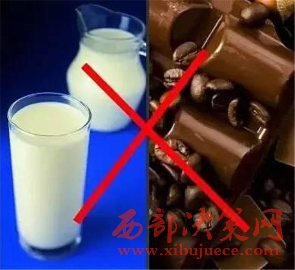 牛奶+巧克力牛奶中的鈣與巧克力中的草酸結(jié)合成草酸鈣,可造成頭發(fā)干枯、腹瀉,出現(xiàn)缺鈣和生長發(fā)育緩慢。