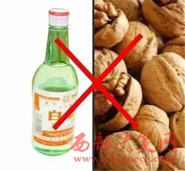 白酒+核桃易致血熱,輕者燥咳,嚴(yán)重時(shí)會(huì)出鼻血。