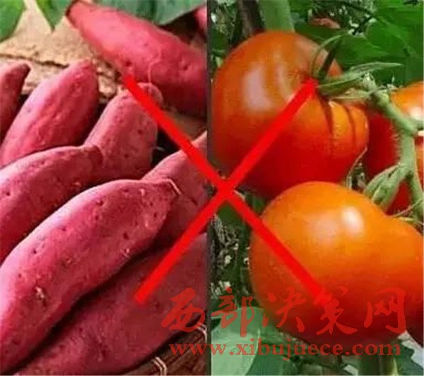 西紅柿+地瓜(紅薯)同食會(huì)得結(jié)石病、嘔吐、腹痛、腹瀉。