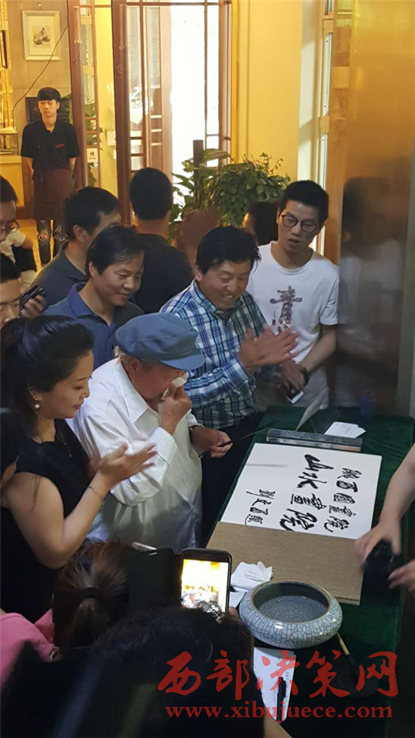 當李老師談起書法來,兩眼炯炯有神,自放異彩,書法已融入他的生命。當我們走進李老師的工作室,練習的作品如一座小山,筆架上的毛筆各種型號應有盡有,裝墨汁的缽盂,很是夸張,不敢說墨池,那樣有點浮夸,有點像關中人吃面的老碗那樣大的缽盂。沒有上過大學的他,也許是對傳統(tǒng)文化的摯愛,也許是身邊的朋友影響了他。