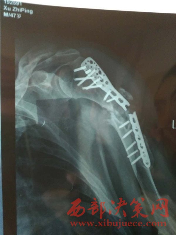 西部決策網(wǎng)-西部大開發(fā)訊(記者云鵬 實習 馬勇)近日有患者徐某向西部大開發(fā)雜志社反映,在2015年4月6日自己駕駛農(nóng)用機動車不慎發(fā)生單方事故,導致左側肱骨粉碎性骨折,救治于神木大保當博仁醫(yī)院。