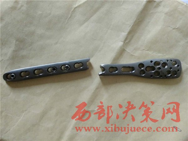 在當時的手術當中院方告知患者手術中采用的是鈦合金鋼板,當時的報價為15800元,術后未發(fā)現(xiàn)什么異常故住院18天后出院。時隔1年半到2016年年底,來到榆林星元醫(yī)院準備拆鋼板時,通過XT片后發(fā)現(xiàn)鋼板是斷裂的,固定鋼板的13個鋼釘也全部斷裂,肱骨也未長好,所以不得不再進行二次手術,將原來的鋼板拆除,再做一次手術,再一次將19個鋼釘打在了自己的左胳膊上。