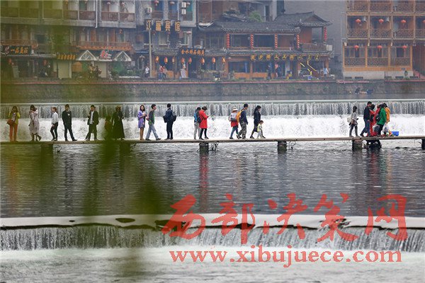 4月4日,游客在湖南鳳凰古城參觀。