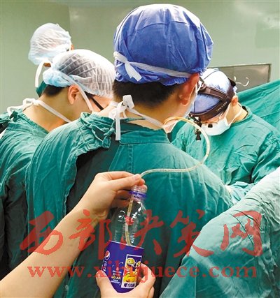 記者通過四川省人民醫(yī)院了解到,這張照片拍攝于3月17日,當時省人民醫(yī)院住院部手術(shù)室二手術(shù)室間正在進行一臺Bentall+全主動脈弓置換+降主象鼻支架置入+冠脈搭橋術(shù)。這次手術(shù)持續(xù)了12個小時,從上午9點過開始,一直持續(xù)到晚上9點過結(jié)束。照片拍攝于下午5點,當時巡回護士正在通過無菌引流管,給一直未進午餐的一助醫(yī)生喂可樂解渴。據(jù)了解,這樣的情況在心臟外科手術(shù)中很常見,也從一個側(cè)面說明了手術(shù)醫(yī)生不僅需要高精尖的專業(yè)技能、高強度的工作,還需要強壯的體魄!正是這些在封閉的手術(shù)間里全力以赴的醫(yī)護團隊,換來了一個個生命的奇跡。