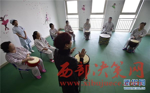 4月6日,抑郁癥患者在康復(fù)治療科的音樂治療室進行心理治療。