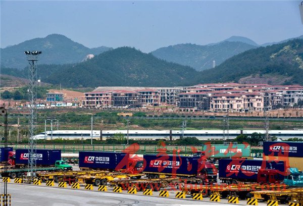 4月15日,浙江義烏西站鐵路口岸,準(zhǔn)備通過中歐班列發(fā)往國外的集裝箱。“統(tǒng)一品牌中歐班列”作為國際貨物聯(lián)運(yùn)的新型組織方式,已成為沿線各國加強(qiáng)基礎(chǔ)設(shè)施互聯(lián)互通、提升務(wù)實(shí)合作水平的重要載體和推進(jìn)“一帶一路”建設(shè)、促進(jìn)共問繁榮發(fā)展的重要平臺。