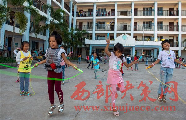 這是云南省貢山獨(dú)龍族怒族自治縣獨(dú)龍江鄉(xiāng)中心小學(xué)的獨(dú)龍族學(xué)生在新建成的教學(xué)樓前打籃球(2016年11月23日攝)。