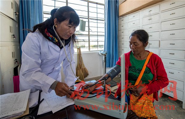 這是云南省德宏傣族景頗族自治州隴川縣隴把鎮(zhèn)龍安村的一名景頗族村民(右)在村衛(wèi)生室里看?。?月19日攝)。